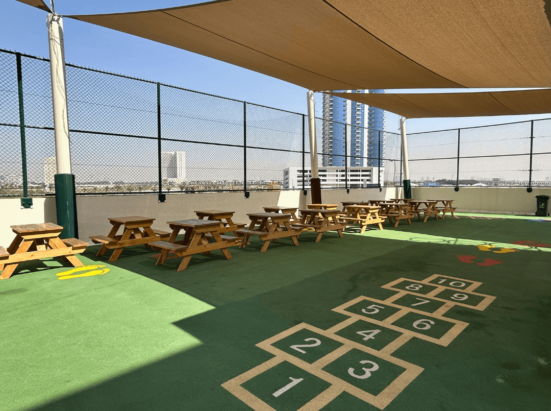 Our fully shaded outdoor court offers space for structured sport and social play. From netball and basketball to PE lessons and supervised playtimes, children build teamwork, resilience and physical confidence. Calm seating areas provide space to connect and reset.